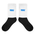 These socks are extra comfortable thanks to their cushioned bottom. The foot is black with artwork printed along the leg with crisp, bold colors that won't fade.